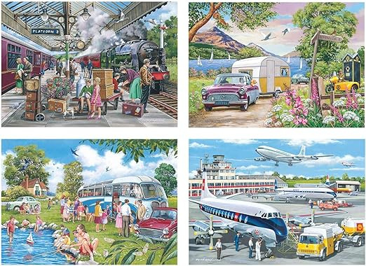 in deze doos zitten 4 puzzels van 500 stukjes met de titels: