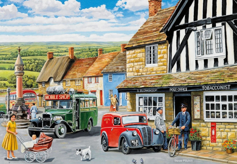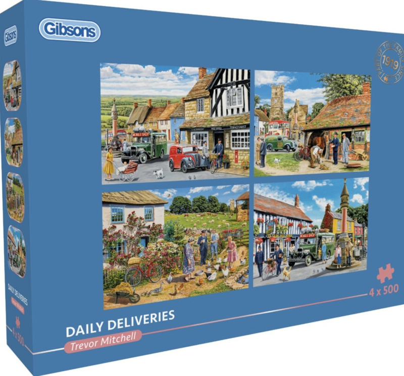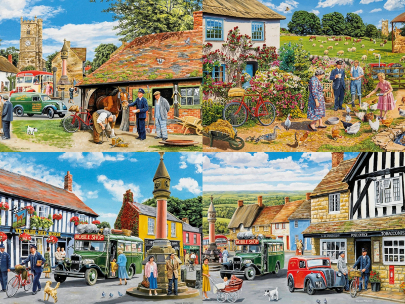 Deze puzzels nemen je mee langs nostalgische bezorgmomenten en alledaagse dorpsscènes vol klassieke voertuigen en herkenbare details.